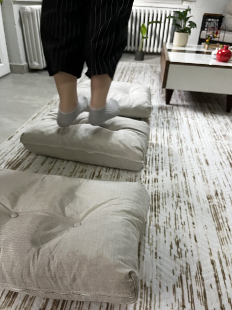 Oyunu biraz daha zorlaştırmak adına altına minder gibi dengesini biraz zorlayacak bir materyal koyabilirsiniz. Böylelikle vestibüler duyu sistemini ve motor planlama becersini de geliştirirebilirsiniz. Örnek video hemen aşağıda 😊
